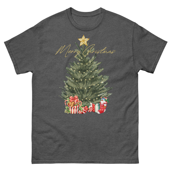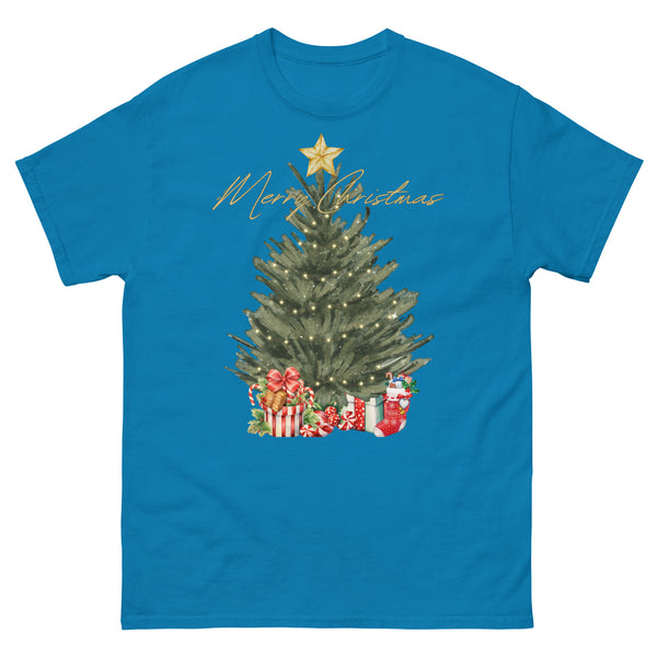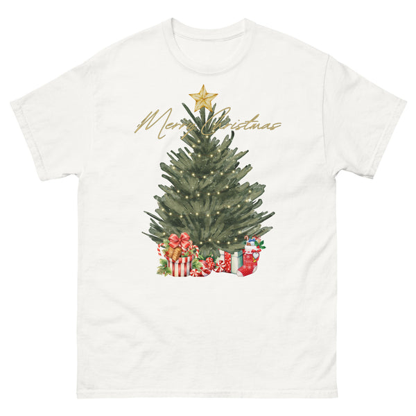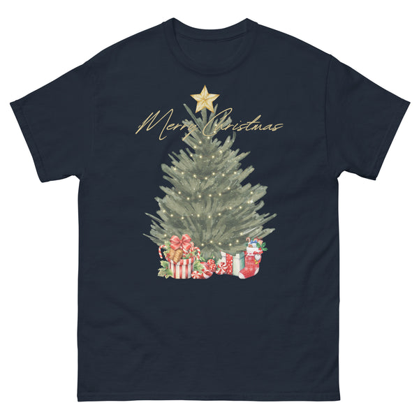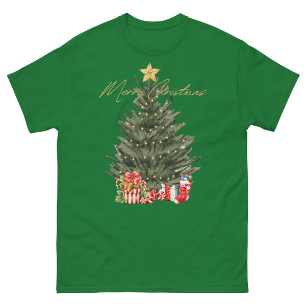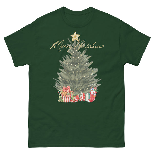 green water color christmas tree w/presents